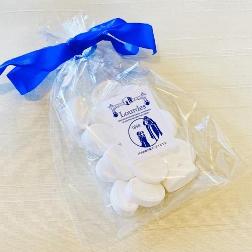 ルルド・パステーユ キャンディー(50g) ■ルルドの水を練り込んだキャンディーです☆ −原料−(フランス製) ・砂糖 ・トラガントガム ・ミントエキス ・水(ルルドの水) ミント味のほんのり甘くさっぱりしているキャンディーです☆ 直射日光を避け、乾燥した涼しい場所に保存して下さい。 ※画像2枚目は50g入りと20g入りを掲載しております。
